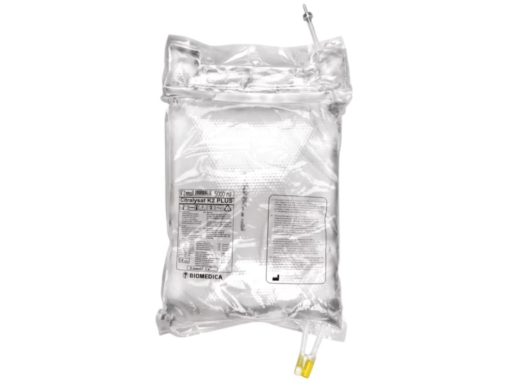 Citralysat K2 Plus – dialyzační roztok s fosfátem pro CRRT s citrátovou antikoagulací 4% citrátem trisodným a současným podáváním kalcia. Dodáván ve dvoukomorových vacích (5000 ml), které se smíchají těsně před použitím. Konečný roztok obsahuje: Na+ 133 mmol/l, K+ 2,0 mmol/l, Mg2+ 1,0 mmol/l, Cl- 115,75 mmol/l, HCO3- 20 mmol/l, H2PO4- 1,25 mmol/l a glukózu 1 g/l. pH ~ 7,4.